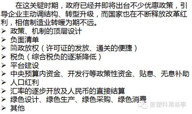 新挑战“十二五”期间,再生聚酯涤纶产能增长近63%,产量仅增加近58%,开工率在60%,再生丙纶开工率在78%,国内废旧纺织品每年的以20%速度增长,但开工率也仅为70%。再生聚苯硫醚生产企业根据进口原料、市场订单来安排开车,生产经营没有持续性。 据海关统计,2015年前三季度我国进出口总值17.87万亿元,比去年同期下降7.9%。其中,出口10.24万亿元,下降1.8%;进口7.63万亿元,下降15.1%。国内70%服装加工厂以外销为主,今年受到的最大冲击是来自于东南亚国家的竞争。而原本在华生产的外资高端制造业回流发达国家,投资优势正在消失。由此形成的“前后夹击”成为当前中国制造的无奈现状。10月的秋季广交会的冷清更是让人感受到了实体经济的“寒意”。初步统计,至少有30%的企业受到了严重影响。 很多有识之士开始有意识地压缩国内/当地业务,扩展国外/外地业务,转战一带一路/泛西部地区(慈溪江南、浙江宝绿特、张家港永兴)。 劳动密集型行业,随着劳动成本不断提高,原先赖以生存的低成本优势就消失了。现在行业经营环境恶劣了,企业的员工队伍稳定了,招工不难了。 美国波士顿咨询集团(BCG)今年8月发布的《全球制造业的经济大挪移》报告显示,目前中国的制造成本已经与美国相差无几。以美国为基准(100),中国制造成本指数是96,换句话说,同样一件产品,美国制造成本是 1美元,中国则需要0.96美元。