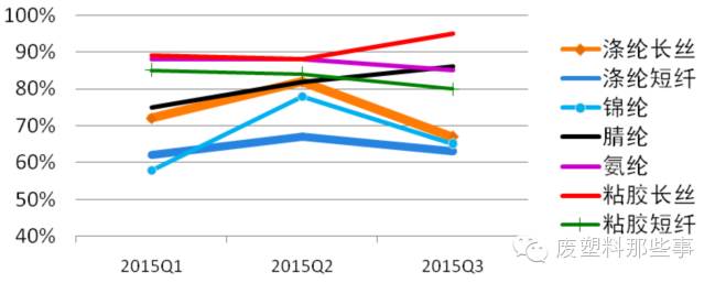 一季度,由于春节因素,化纤行业开工率普遍下降,节后开工率较快回升,二季度开工率整体高于一季度,但5月中下旬开始出现明显下降。淡季持续时间长,调整幅度深。