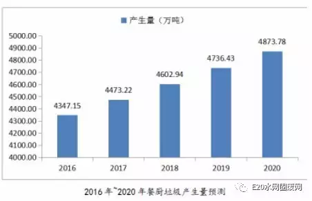自2010年第一批餐厨废弃物资源化利用和无害化处理试点城市建设,我国全面打开餐厨垃圾处理的市场,目前我国餐厨垃圾处理行业进入快速发展阶段。但基于我国餐厨行业处理工艺、边界条件、盈利模式等的不完善,目前我国的餐厨垃圾处理行业仍然显得不够成熟。 E20研究院的《餐厨垃圾处理市场分析报告(2016)》指出,近年来我国经济快速发展,餐厨垃圾以每年10%的增量不断增长。按照城镇人口每人每天产生0.15kg餐厨垃圾计算,我国2011年的餐厨垃圾产生量为3782万吨,到2015年我国的餐厨垃圾产生量增长到了4222万吨。我国餐厨垃圾处理行业也在2015年迎来了市场的集中爆发期。预计2016年我国餐厨垃圾的产生量为4347万吨,到“十三五”末期,我国的餐厨垃圾产生量将增长至4873万吨,餐厨垃圾处理形势严峻。
