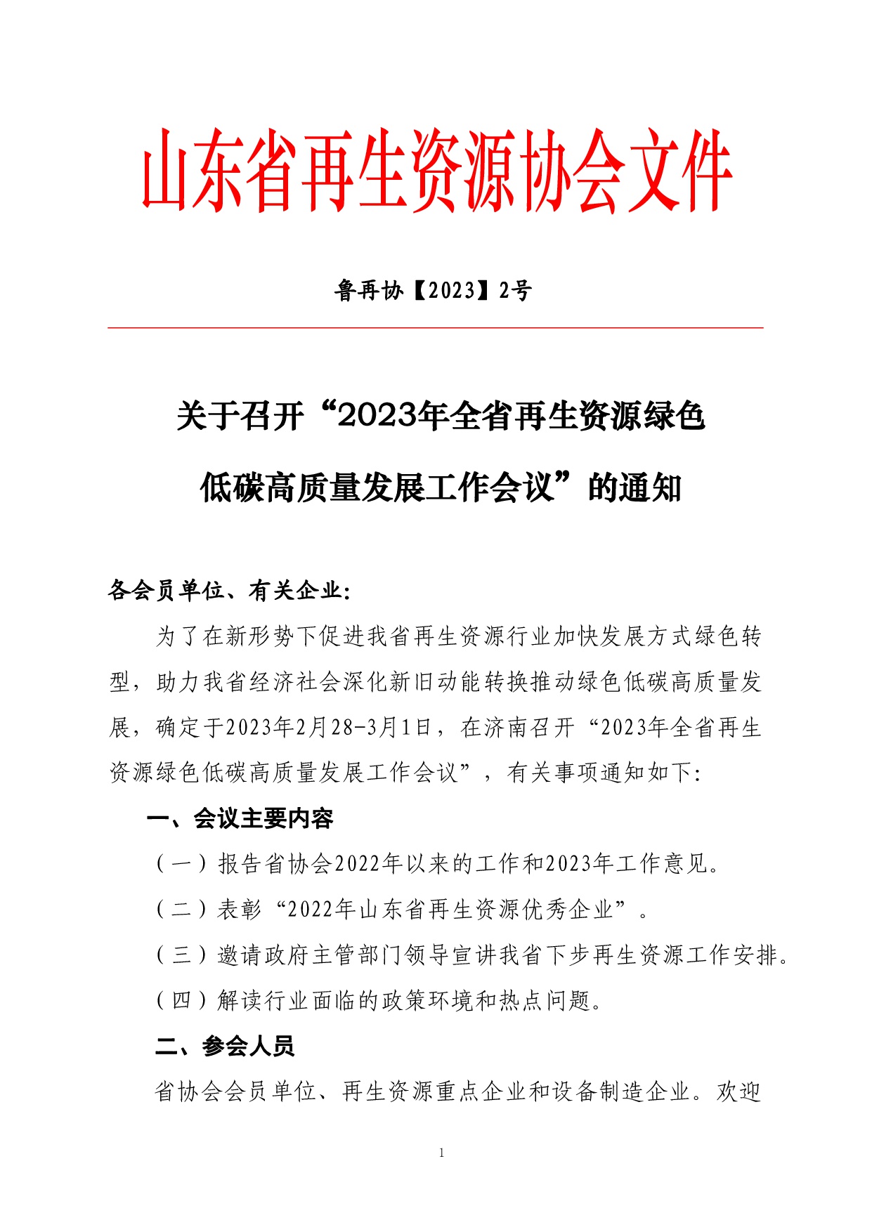 关于召开“2023年全省再生资源绿色低碳高质量发展工作会议”的通知